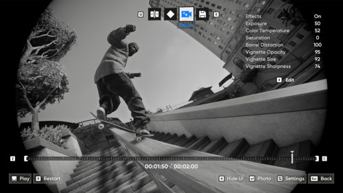 - Préréglage : Changer d'apparence et de configuration devient plus facile grâce aux préréglages de skateur. Tous les joueurs commenceront avec trois préréglages de personnage pour personnaliser entièrement leur style, leur planche et plus encore, avec des emplacements supplémentaires disponibles à l'achat dans le jeu.