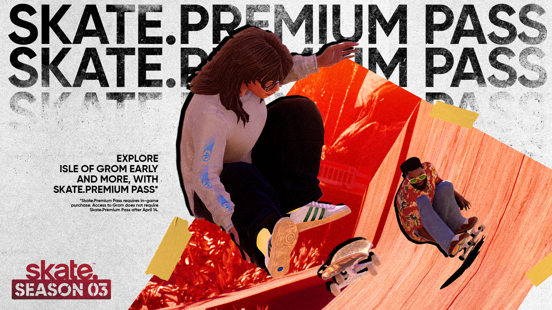 - Mise à jour du skate.Pass : La Saison 3 introduit un skate.Pass revisité avec plus de 100 niveaux répartis entre les parcours Standard et Premium, proposant des planches, des autocollants, des trucks, des grips, des tatouages et bien plus encore. Thrasher, Vans et adidas font également leur apparition dans le skate.Pass, tandis que le skate.Premium Pass+ (qui offre aux joueurs un avantage de 4 000 Ticks pour débloquer rapidement du contenu) fera ses grands débuts.