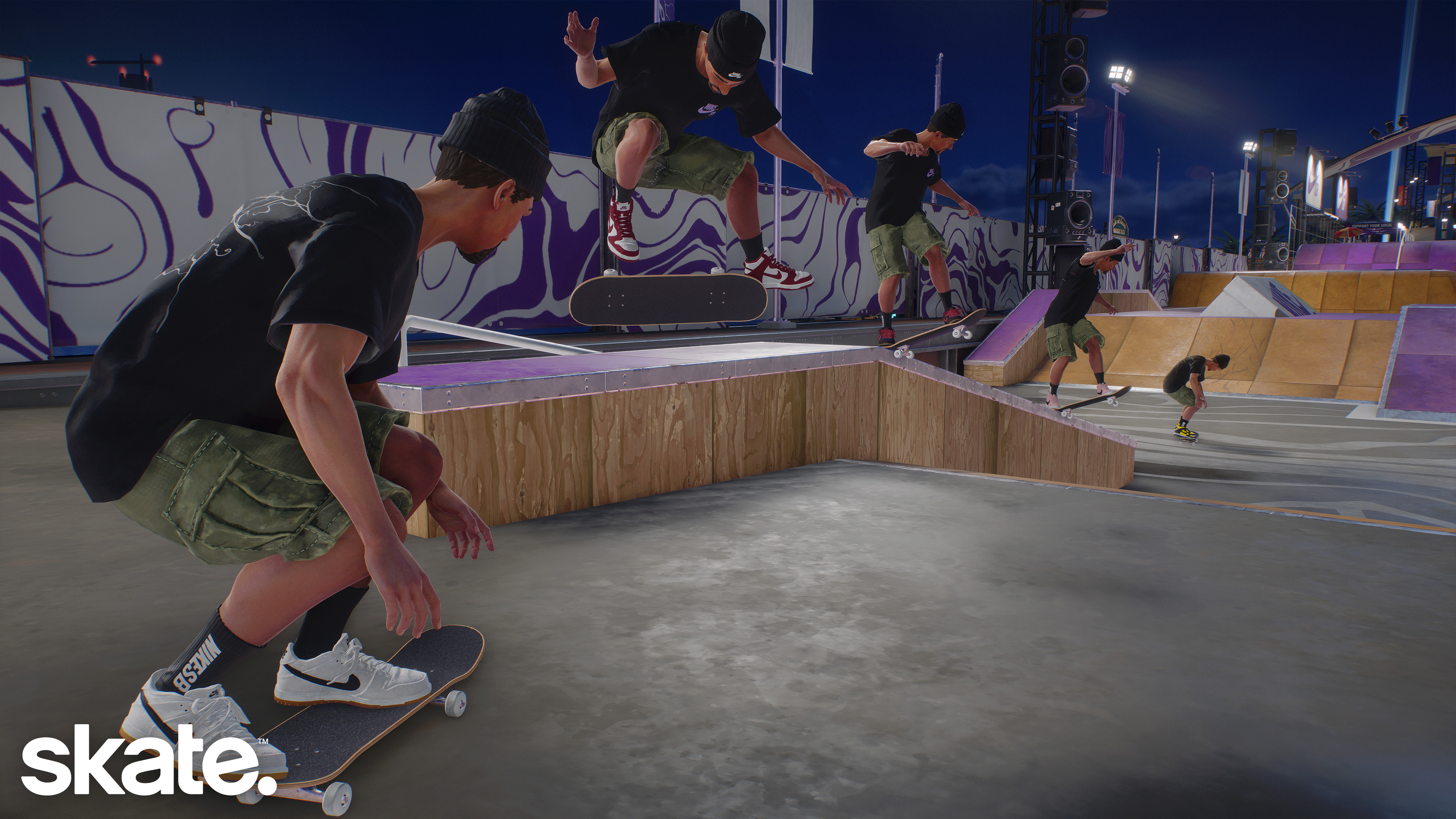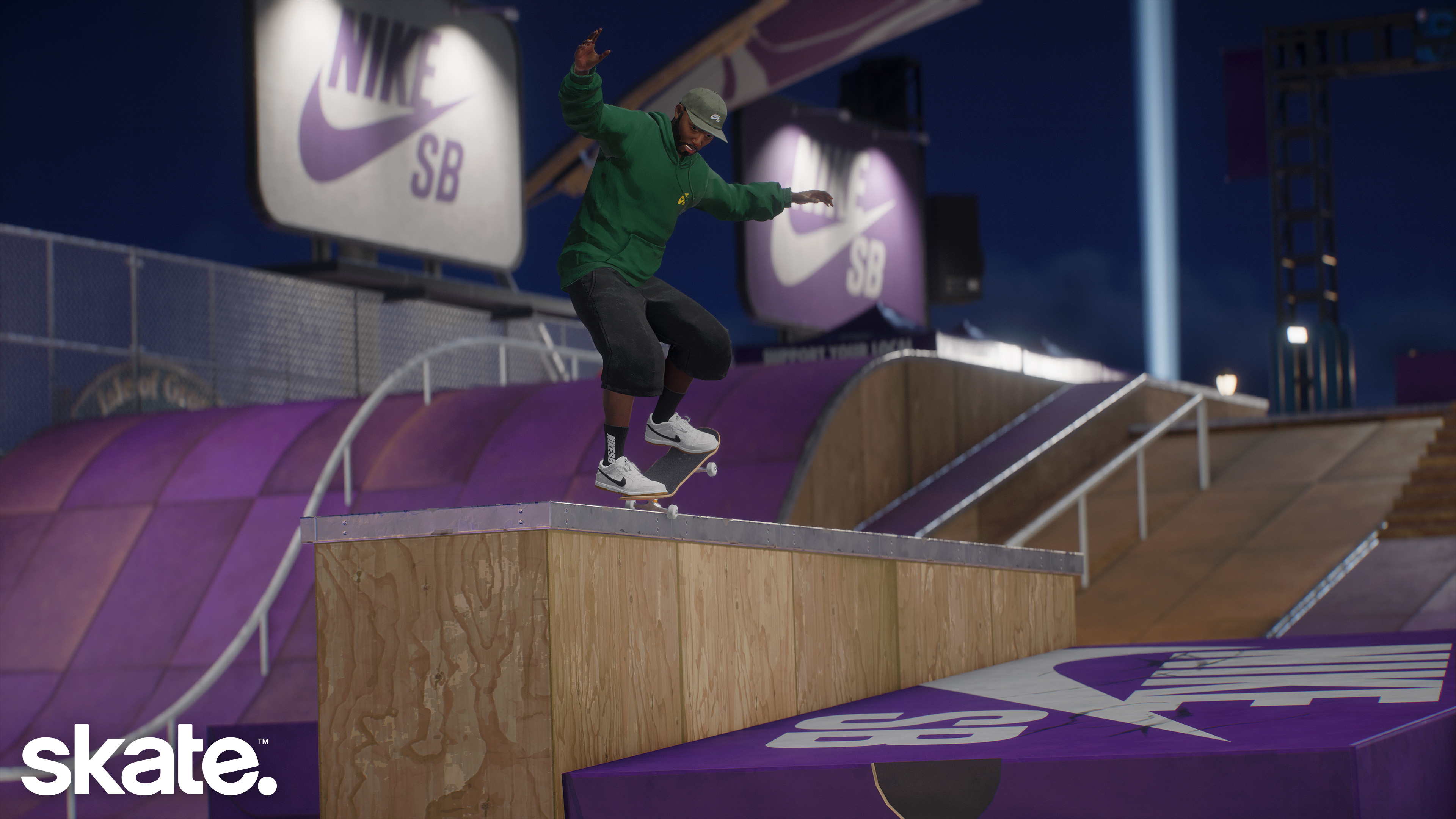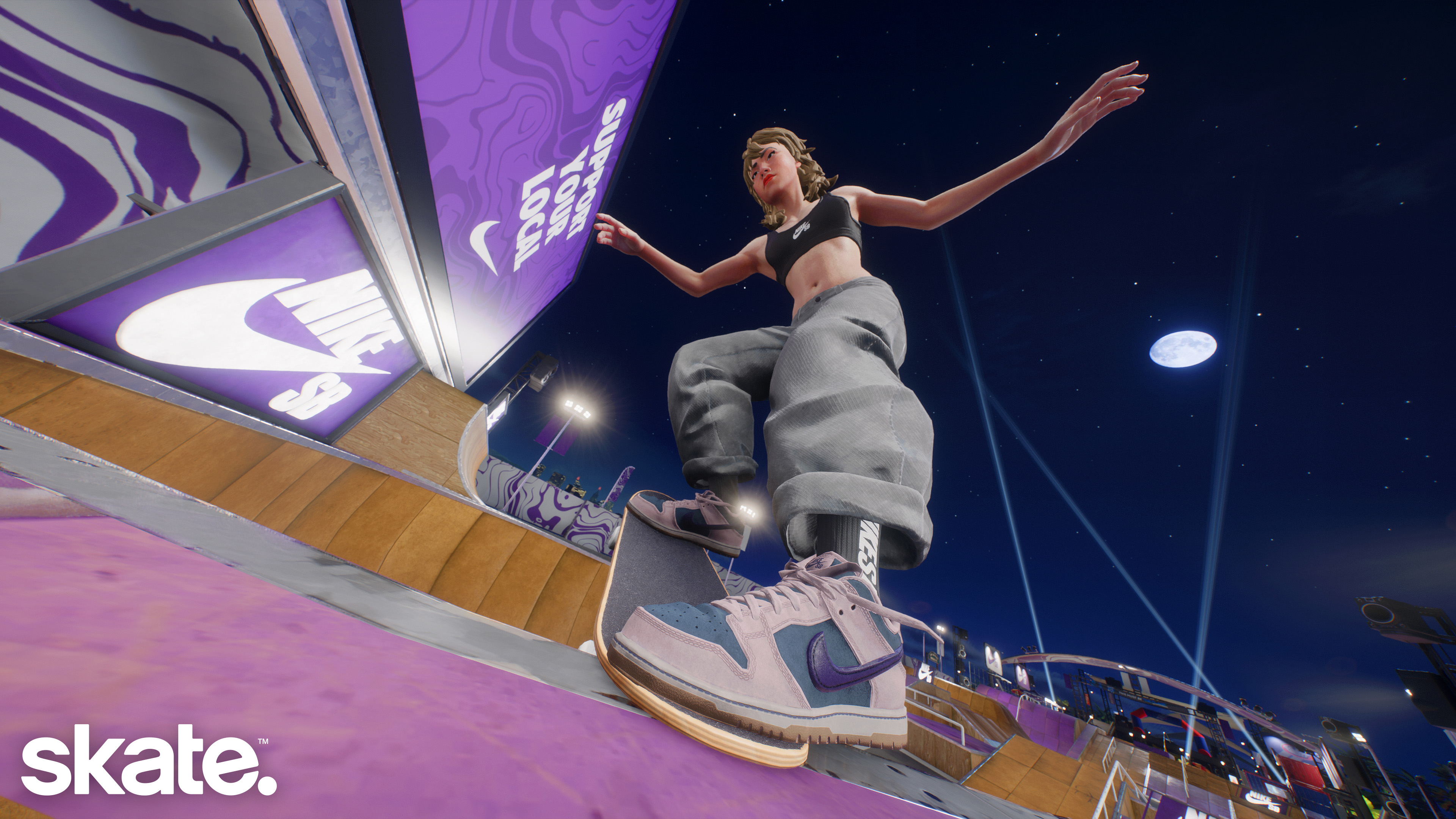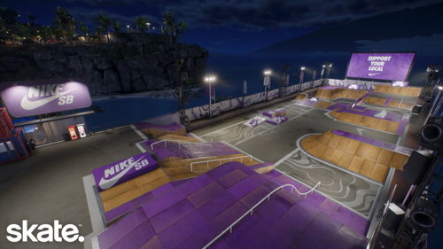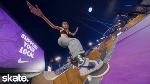 Le 15 avril 2026 - EA et Full Circle ont annoncé que Nike SB est désormais disponible dans skate., amenant la marque emblématique dans les rues de San Vansterdam. L’intégration de Nike SB dans skate. va au-delà de simples produits puisqu’un événement en jeu Nike SB à durée limitée se tiendra jusqu’au 5 mai. Par ailleurs, la fonctionnalité très demandée par les joueur·se·s de skater de nuit arrive avec Grom de nuit, accompagnée d’une variante Nike SB du skatepark, ainsi qu'une vaste collection d'éléments cosmétiques et de défis inspirés de vidéos de skate Nike SB populaires. Ces ajouts apportent une touche d’authenticité supplémentaire à skate. et permettront aux joueur·se·s de s'équiper de chaussures et de vêtements propres à la culture skate depuis des décennies.
